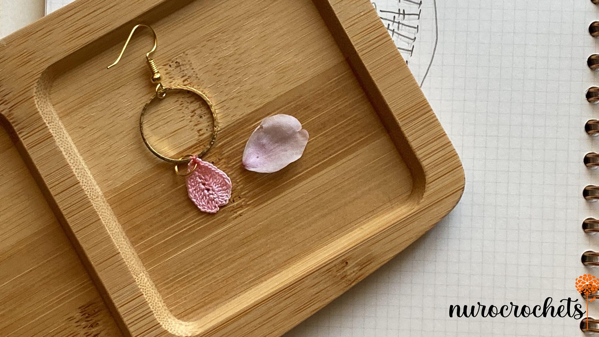 Spring is here. One of the best seasons for long-walks and park visits. Sadly cherry-blossom season is about to end and I have been really wanting to create a very minimalistic crochet sakura petal earrings. I decided that this spring must be the season to make crochet cherry blossom petals. So I picked a beautiful petal from the park and made this simple earring pattern.